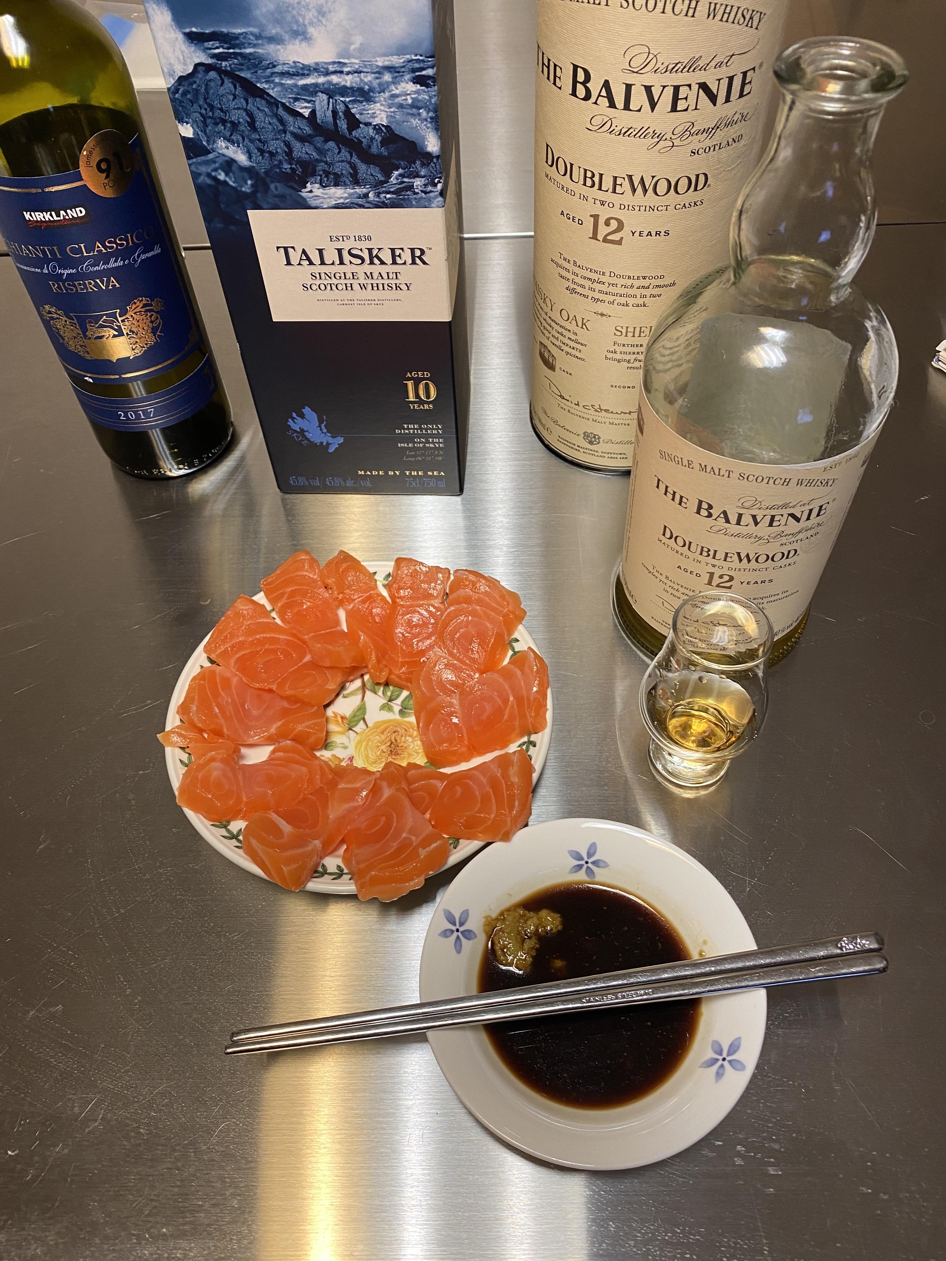 몇 일 전에 코스트코에서 구입한 생연어와 발베니의 조합은 그냥 미쳤다.